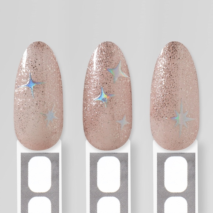 Лаковые полоски для маникюра, 14 шт, с блёстками, цвет бежевый