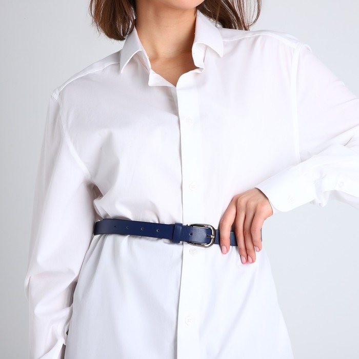 Ремень женский, ширина 2,2 см, винт, пряжка металл, цвет синий