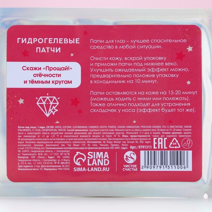 Патчи для области вокруг глаз «На утро 1 января», 1 пара, Новый Год