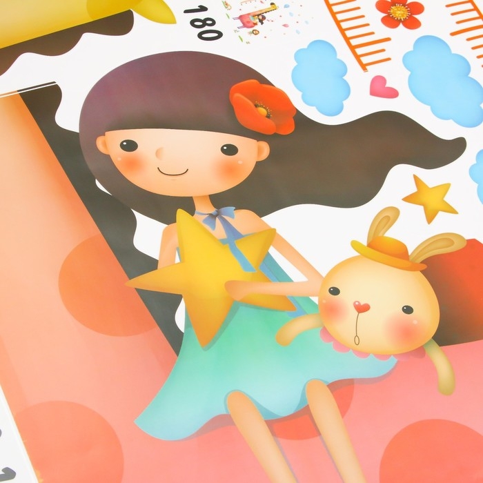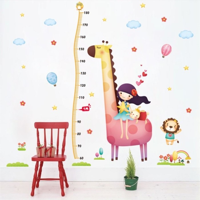Наклейка пластик интерьерная цветная ростомер "Девочка и жираф" 60x90