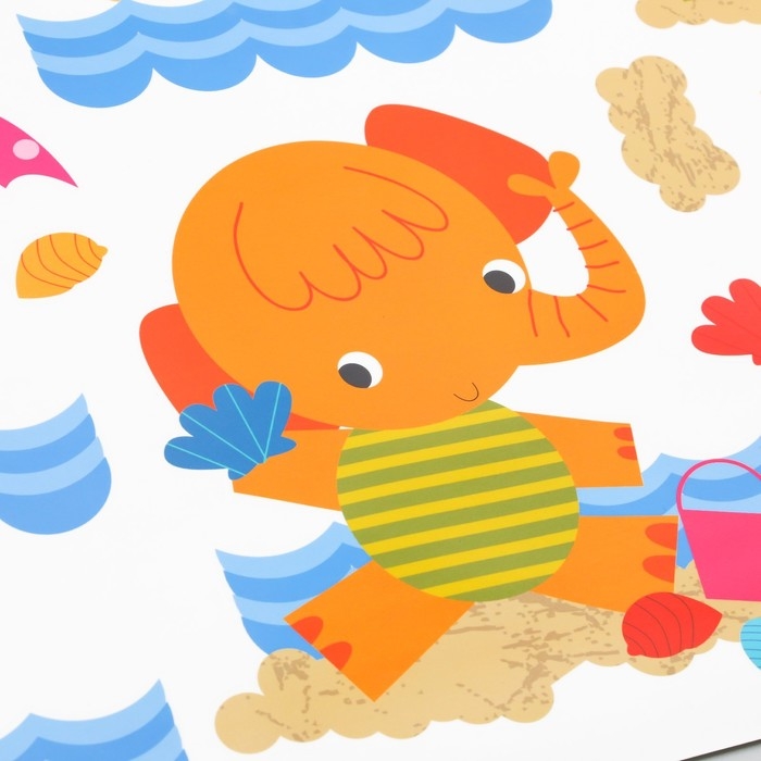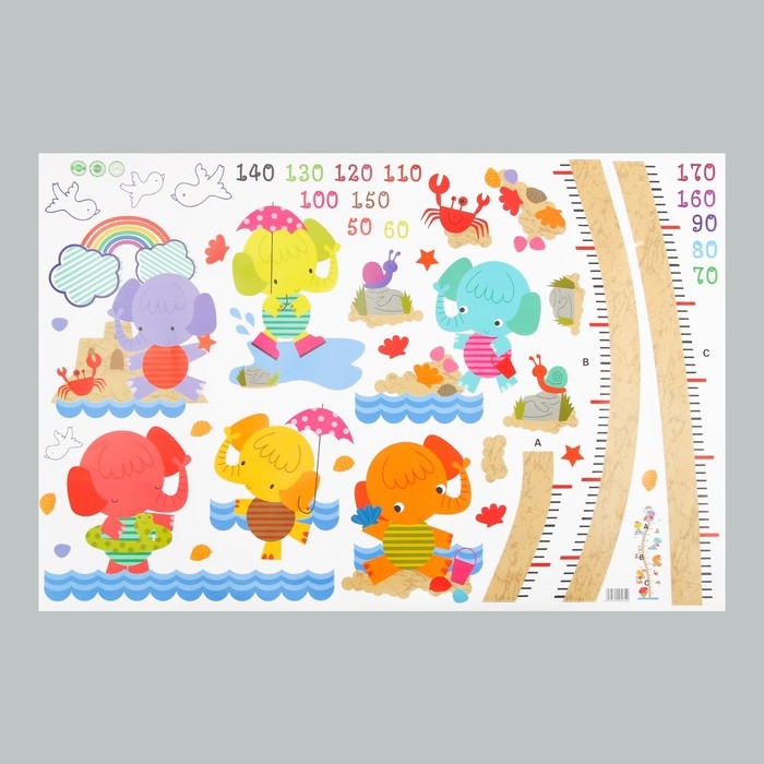 Наклейка пластик интерьерная цветная ростомер "Слонята" 60x90