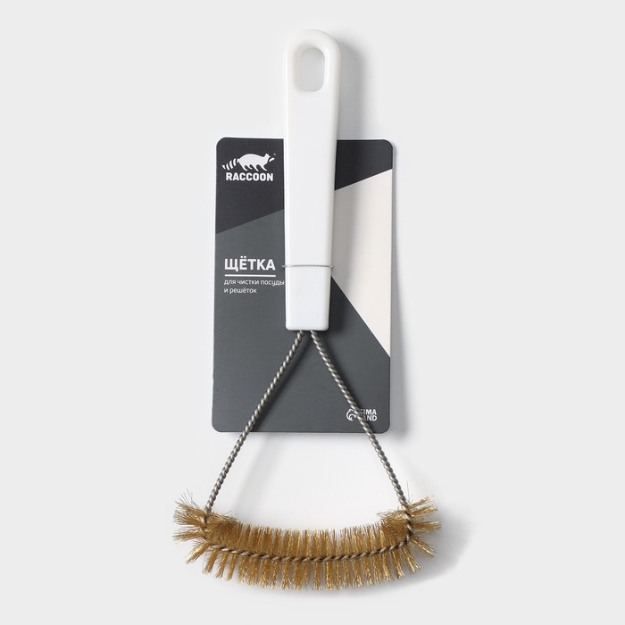Щётка для чистки посуды и решёток-гриль Raccoon, металлической щетина, 23,5×11 см, цвет белый