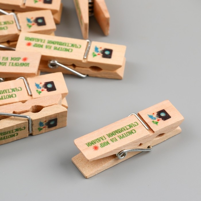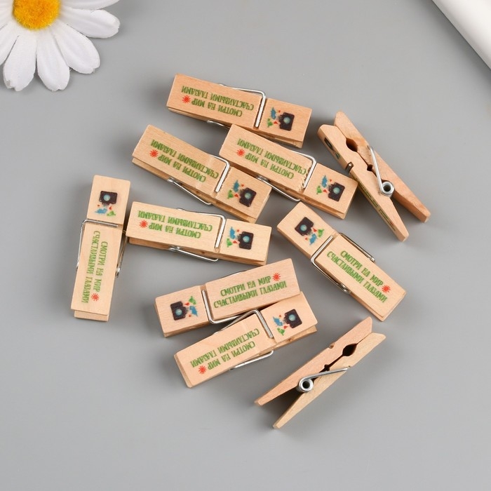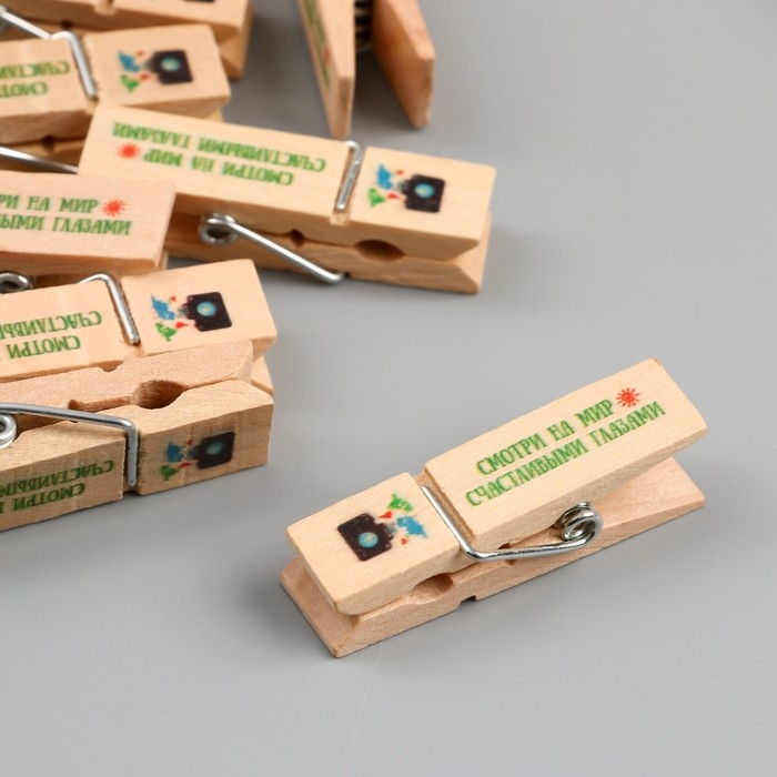 Декор для творчества дерево "Прищепка - Смотри на мир счастливыми глазами" набор 10 шт