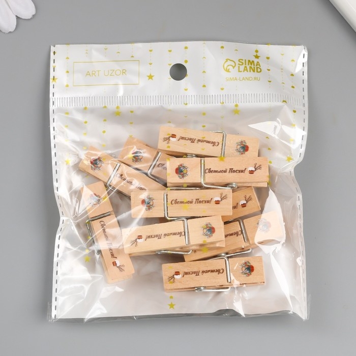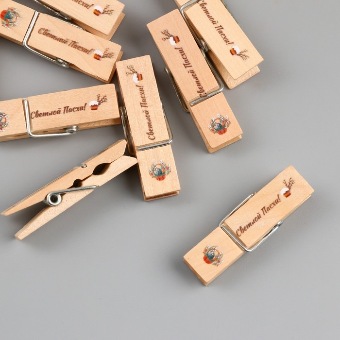 Декор для творчества дерево "Прищепка - Светлой Пасхи!" набор 10 шт