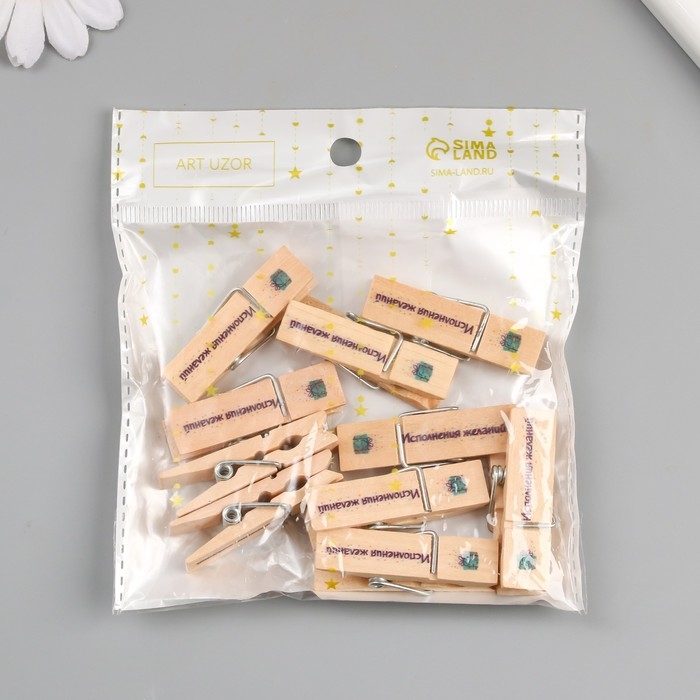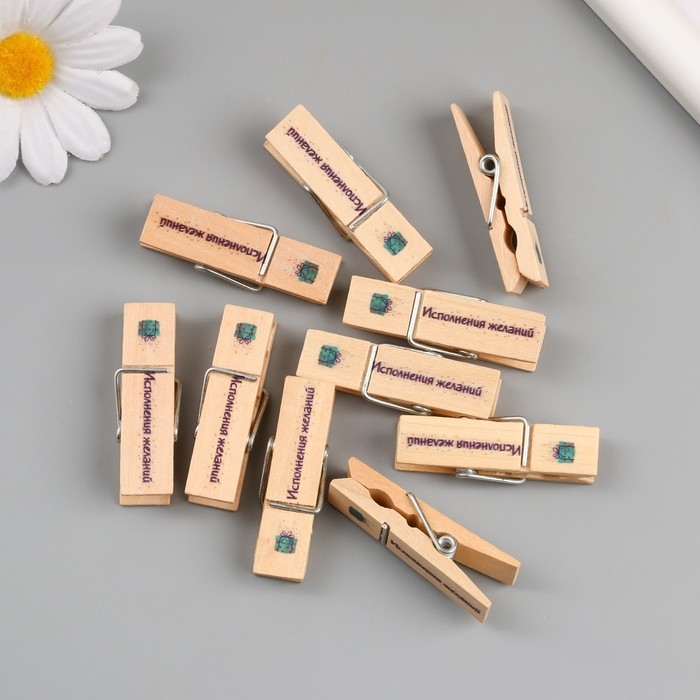 Декор для творчества дерево "Прищепка - Исполнения желаний" набор 10 шт