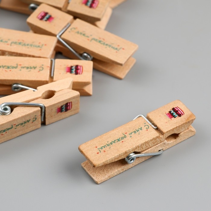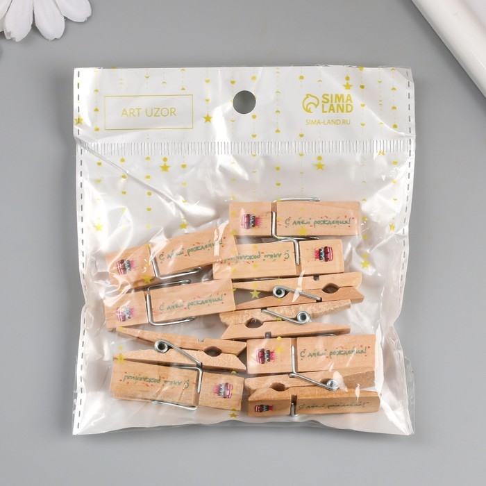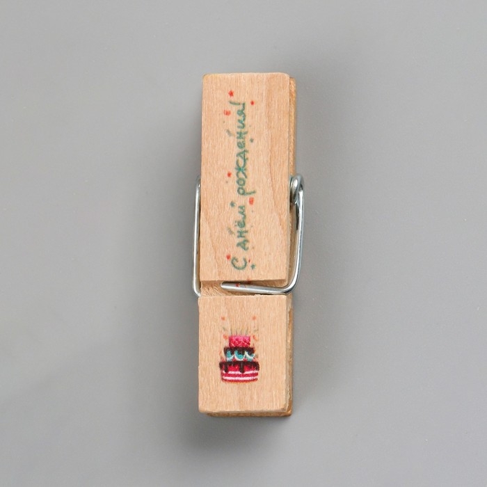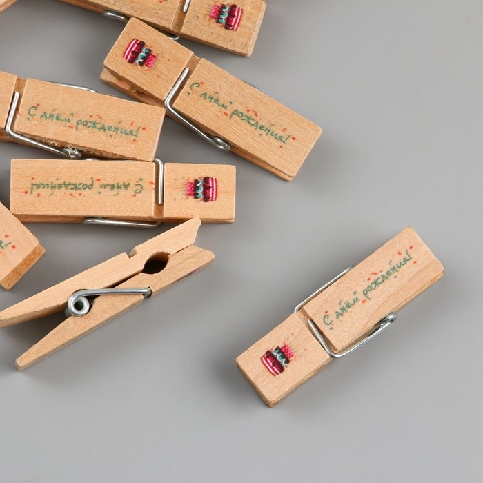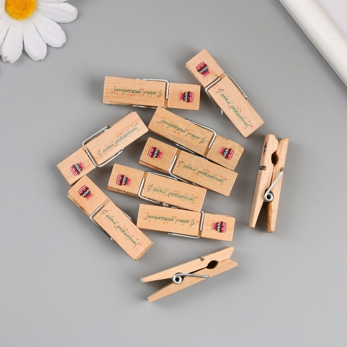 Декор для творчества дерево "Прищепка - С днём рождения!" набор 10 шт