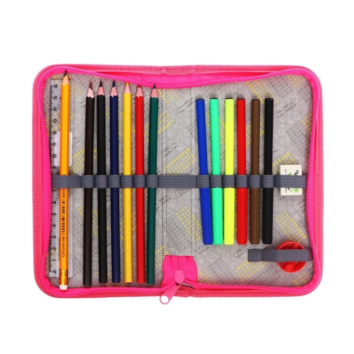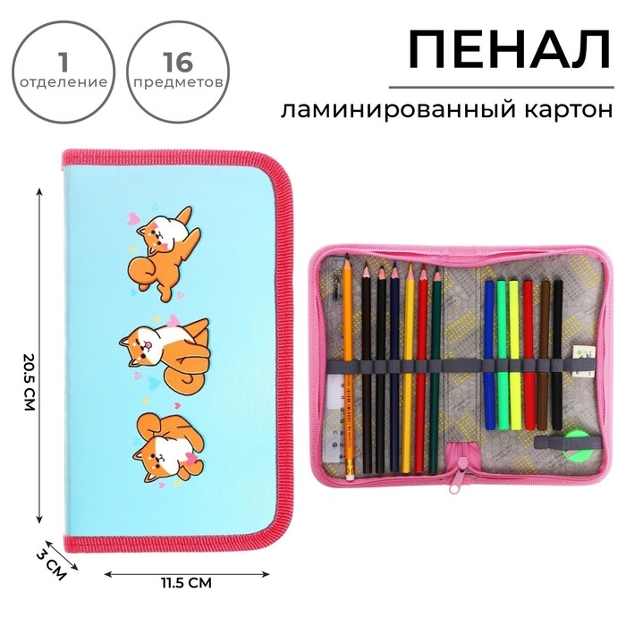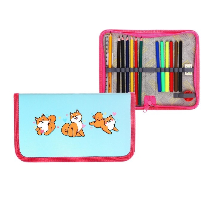 Пенал 1 секция, 115 х 205 мм, с наполнением 16 предметов, Calligrata "Сиба-ину" ламинированный картон, 30П26/set
