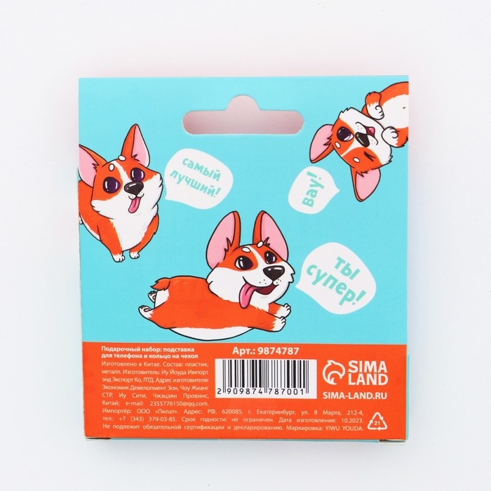 Подарочный набор подставка для телефона и кольцо на чехол «Корги от тебя в восторге»