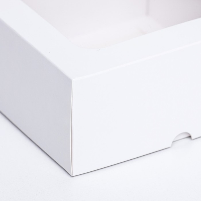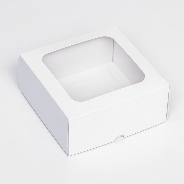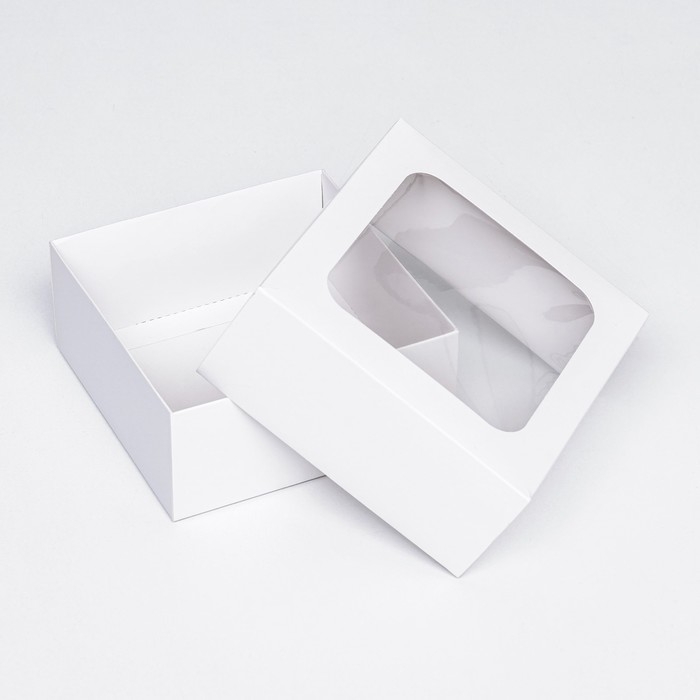 Коробка складная, крышка-дно, с окном, белый, 15 х 15 х 6,5 см,