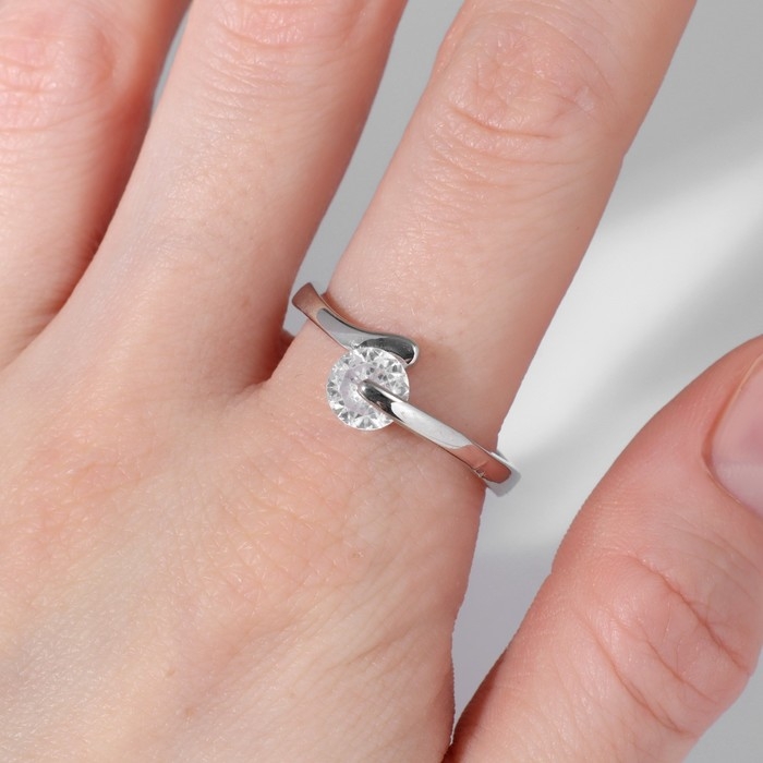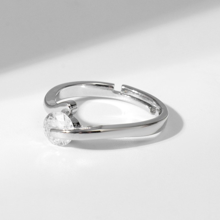 Кольцо «Классика» кристалл соло, цвет белый в серебре, безразмерное