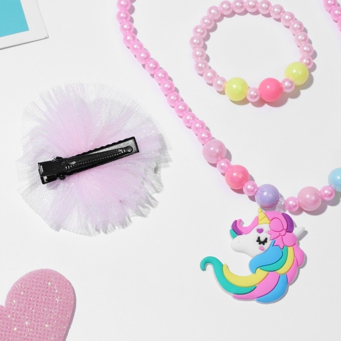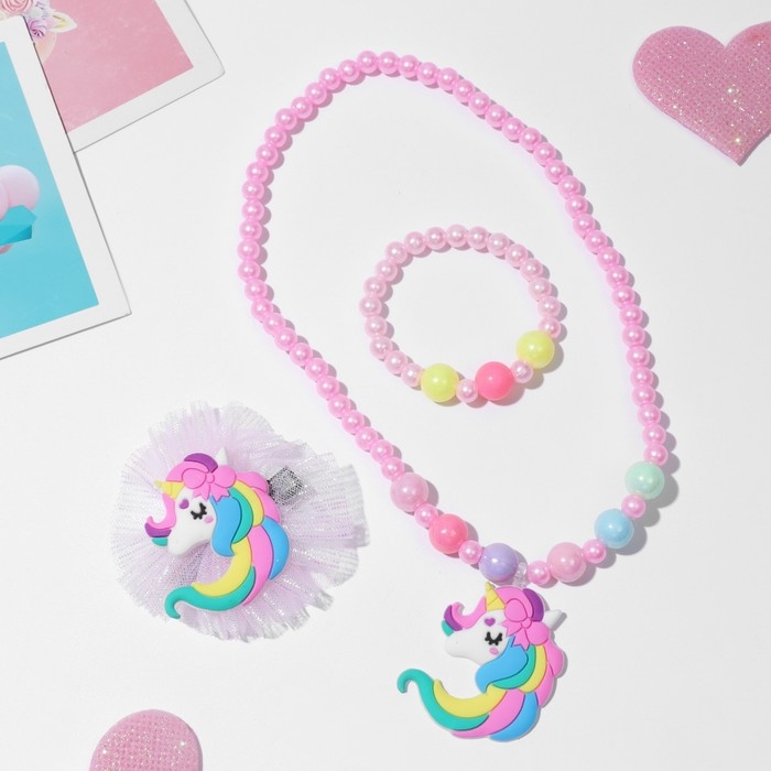 Комплект детский «Выбражулька» 3 предмета: заколка, кулон, браслет, единорог, цвет розовый