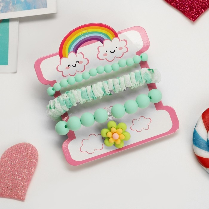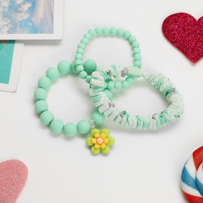 Комплект детский «Выбражулька» 3 предмета: резинка, 2 браслета, цветок, цвет мятный матовый