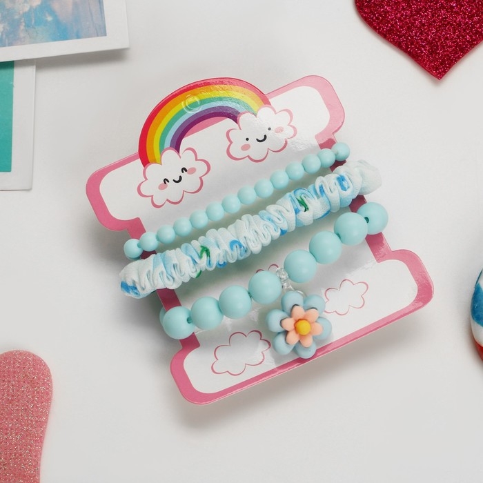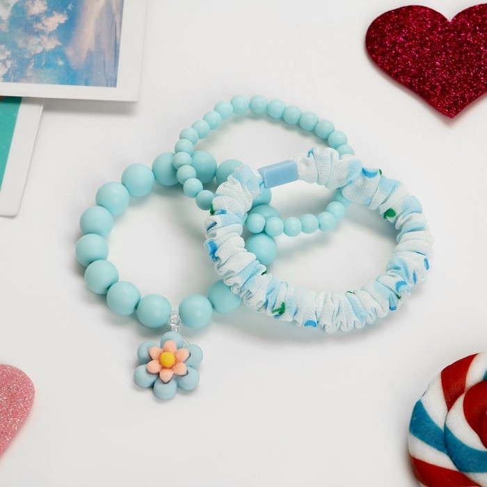 Комплект детский «Выбражулька» 3 предмета: резинка, 2 браслета, цветок, цвет голубой матовый