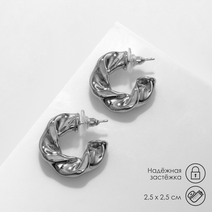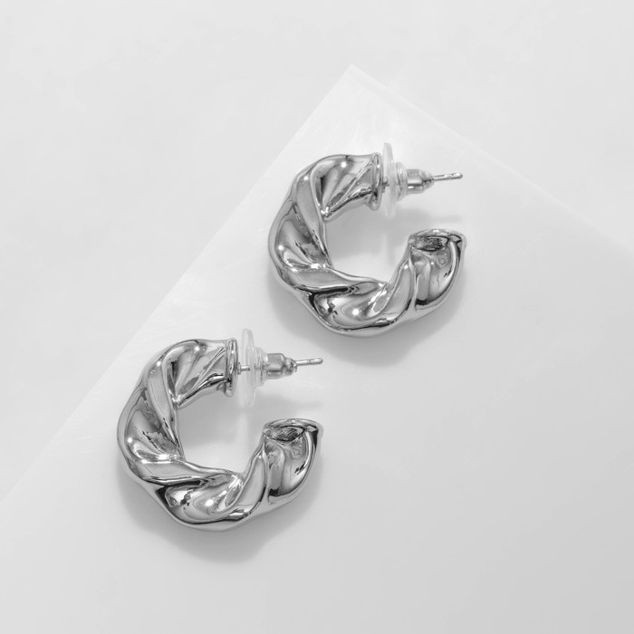 Серьги металл «Завиток» широкие, цвет серебро