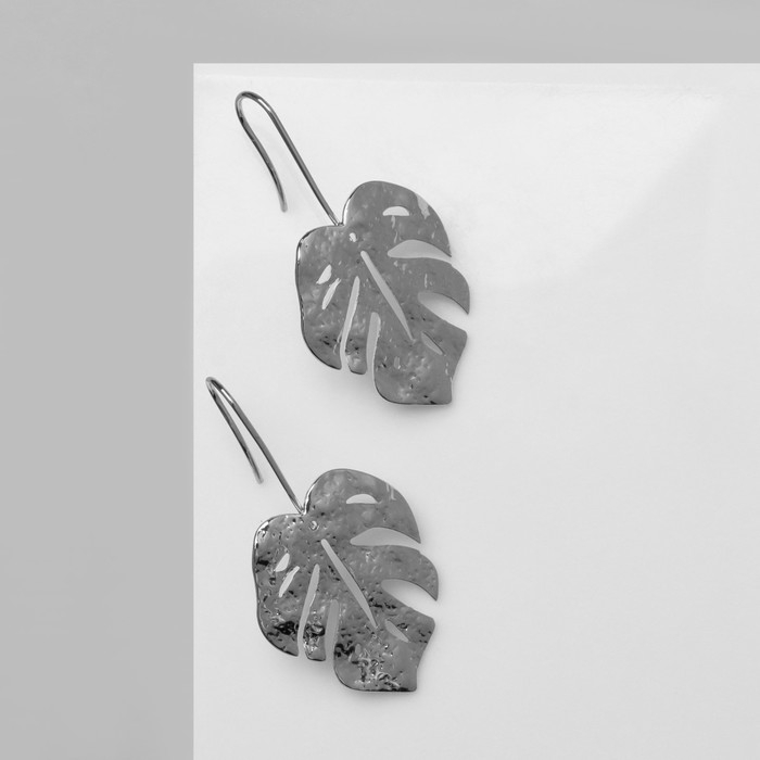 Серьги металл «Монстера» удлинённые, цвет серебро
