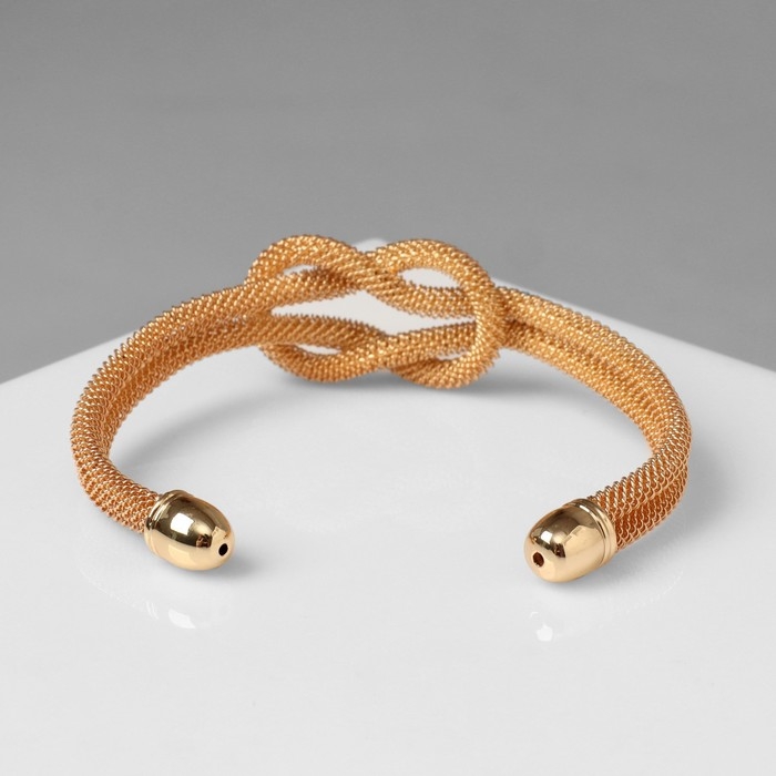 Браслет металл «Жгут» 2 нити, узел, цвет золото