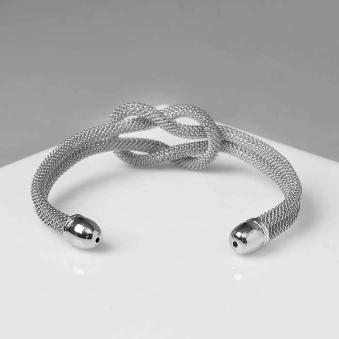 Браслет металл «Жгут» 2 нити, узел, цвет серебро