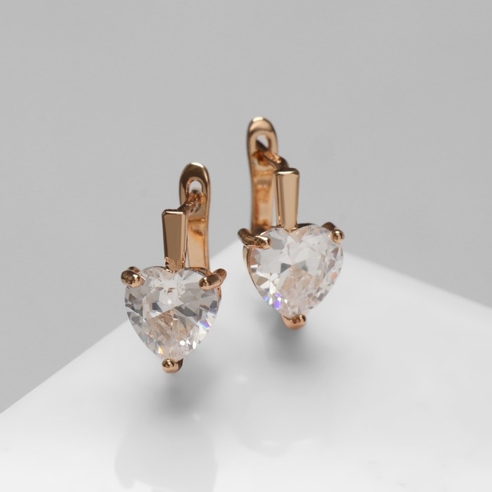 Серьги металл со стразами «Искра» белое сердце, цвет белый в золоте