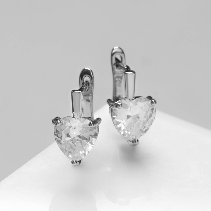 Серьги металл со стразами «Искра» белое сердце, цвет серебро