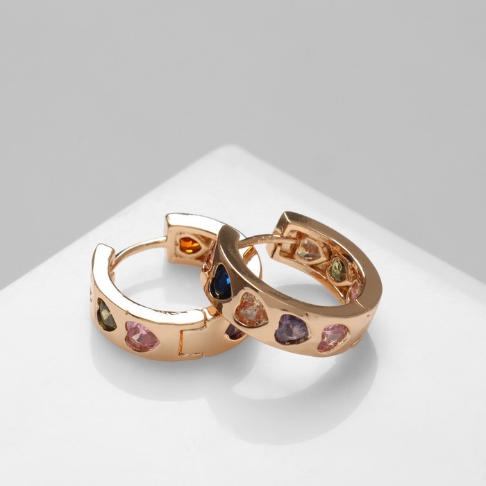 Серьги-кольца «Искра» яркие сердца, цветные в золоте