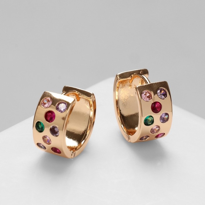 Серьги-кольца «Искра» широкие, яркие вставки, цветные в золоте