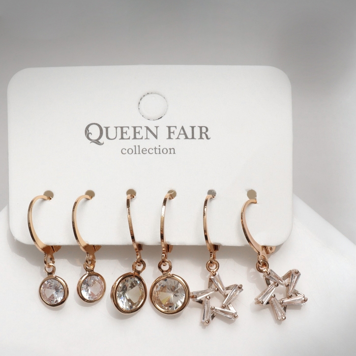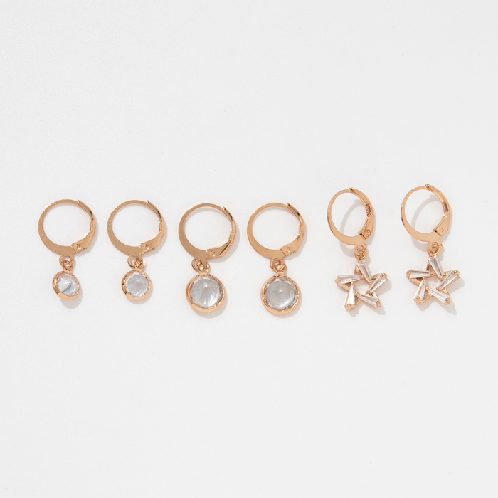 Серьги набор 3 пары «Трио» звезды, цвет белый в золоте