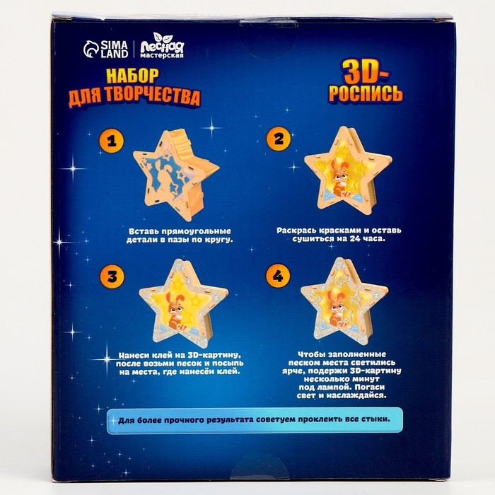 - В комплект входят деревянные заготовки, для прочности сувинира вы можете использовать клей при сборке.