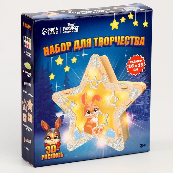 Новогодняя роспись по дереву «Новый год! Зайка» со светящимся песком