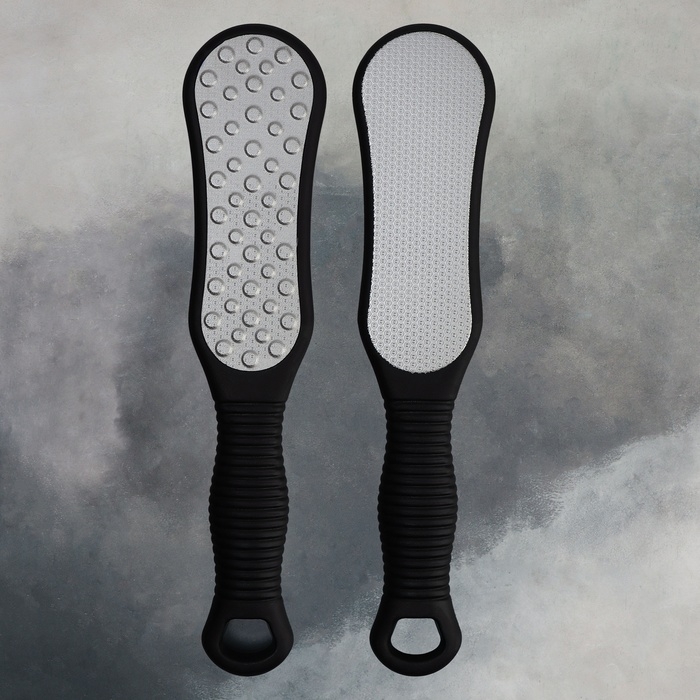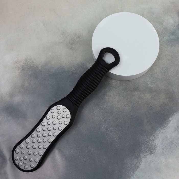Пилка для ног, лазерная, двусторонняя, с пилкой, прорезиненная ручка, 22 см, цвет чёрный