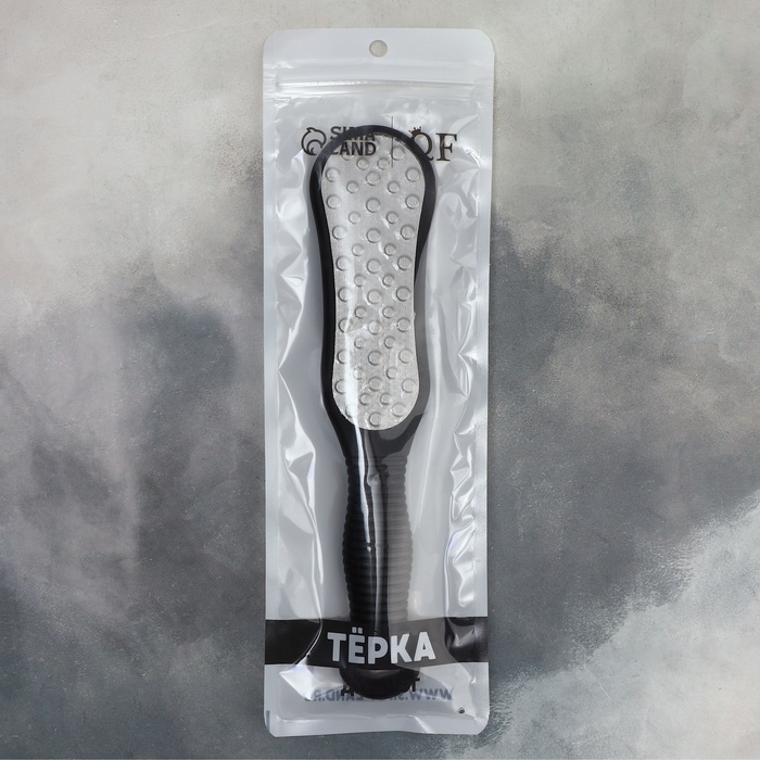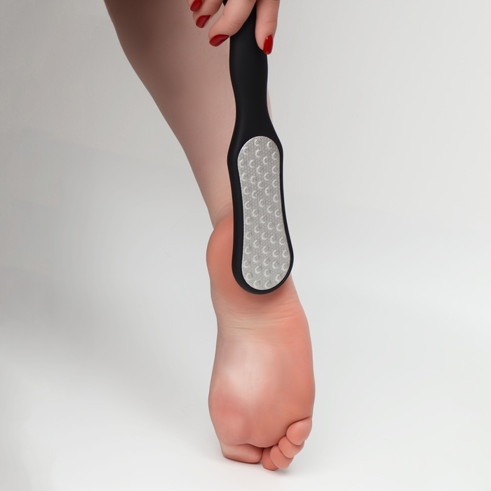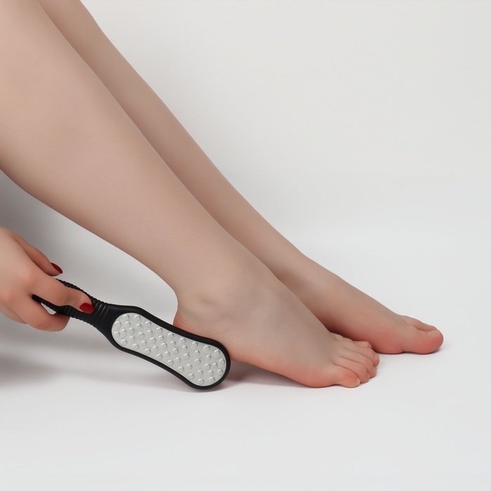 За счёт дизайна, тёркой могут пользоваться не только женщины, но и мужчины. На металлической поверхности с помощью лазера сделаны микрозубчики, которые за 10 пропилов снимут 1 мм огрубевшей кожи. Другая сторона тёрки отполирует уже подготовленный участок до идеального состояния. Проводить такую процедуру можно как на распаренной коже ног, так и на сухой. Комфортную эксплуатацию педикюрного инструмента обеспечит длинная ручка. Между подходами нужно промывать рабочую область в тёплой воде.