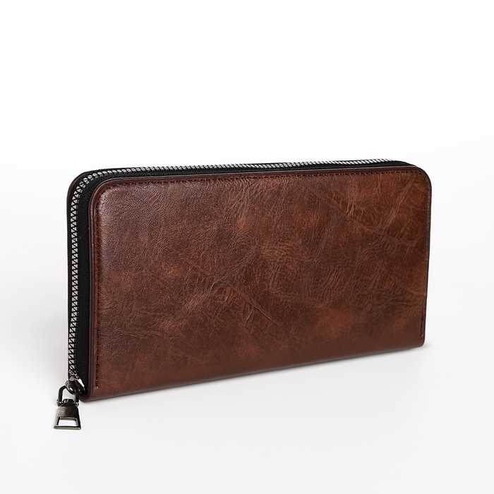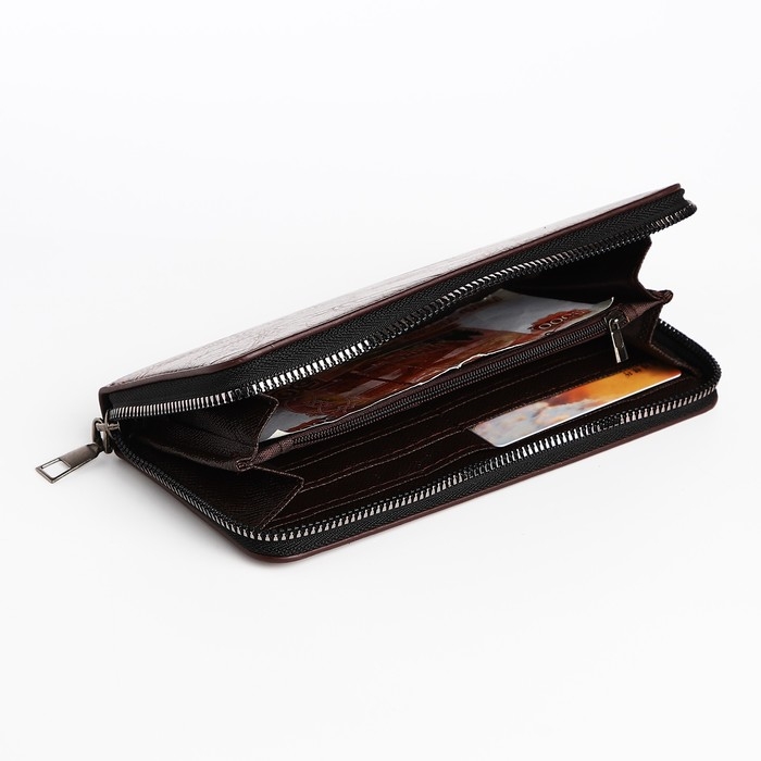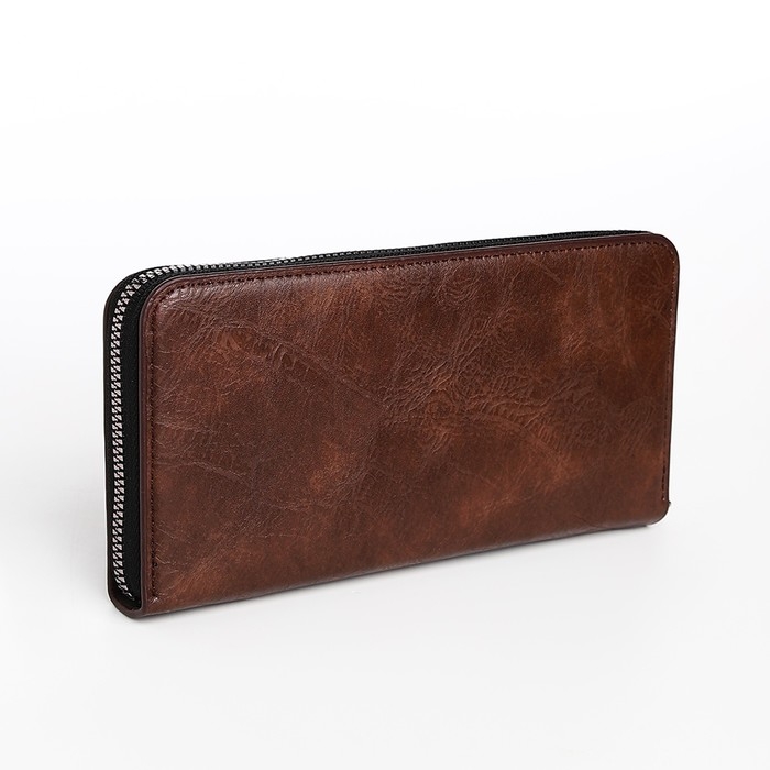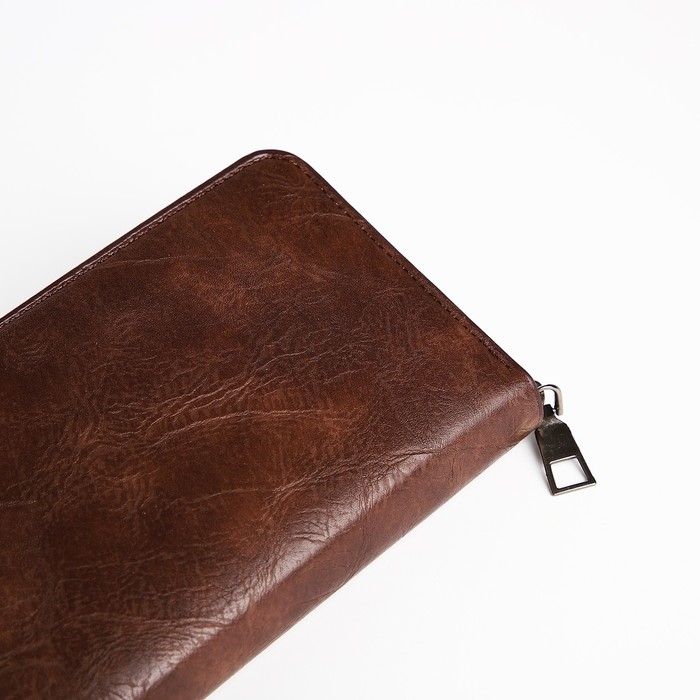 Портмоне мужское на молнии, отдел для купюр, для карт, для монет, цвет коричневый