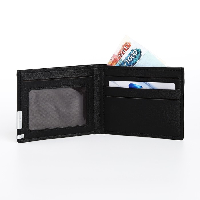 Портмоне мужское без застёжки, отдел для карт, для купюр, цвет чёрный