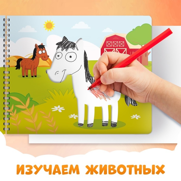 Книга-трафареты «Такие разные животные» с персонажем по имени Синий трактор станет отличным выбором для детей от 3 лет. Книга увлекает ребёнка и способствует развитию важных навыков.