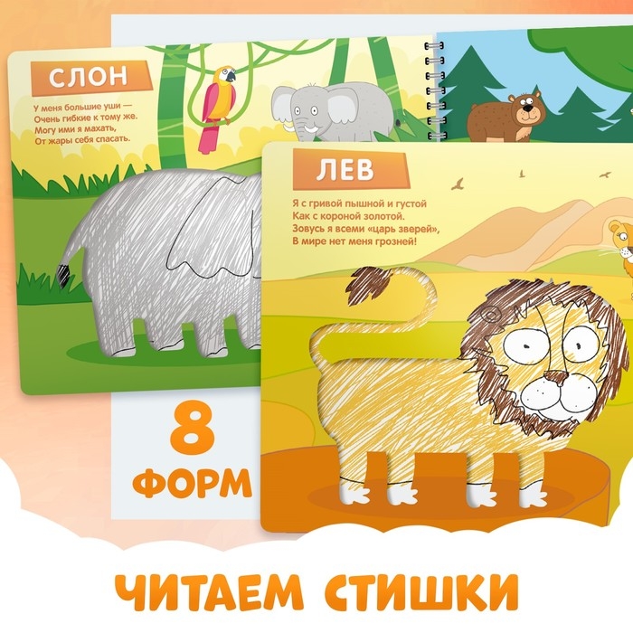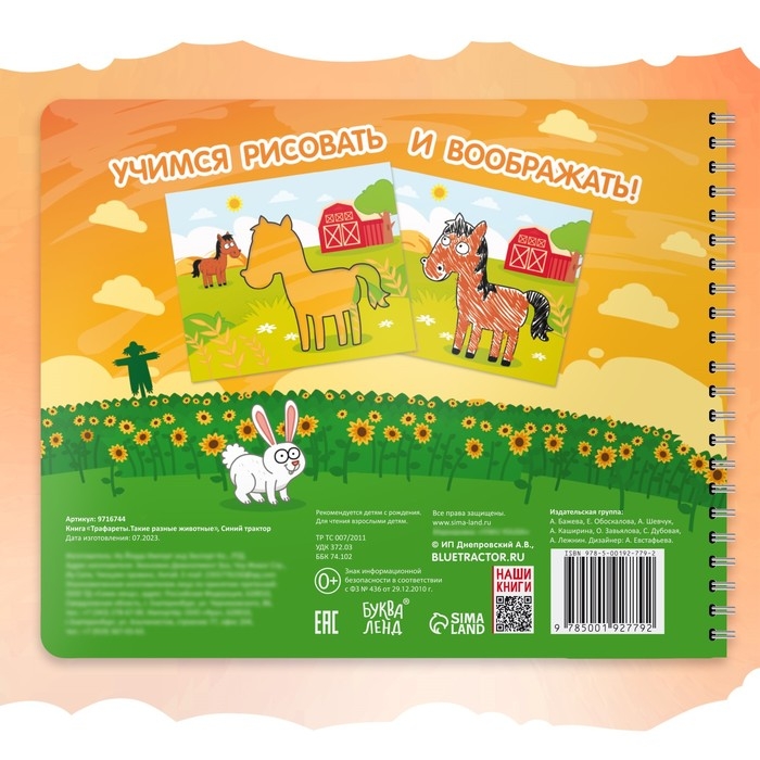 Книга «Трафареты. Такие разные животные», Синий трактор, рисование, трафарет в листе книжки — 8 шт., 3+