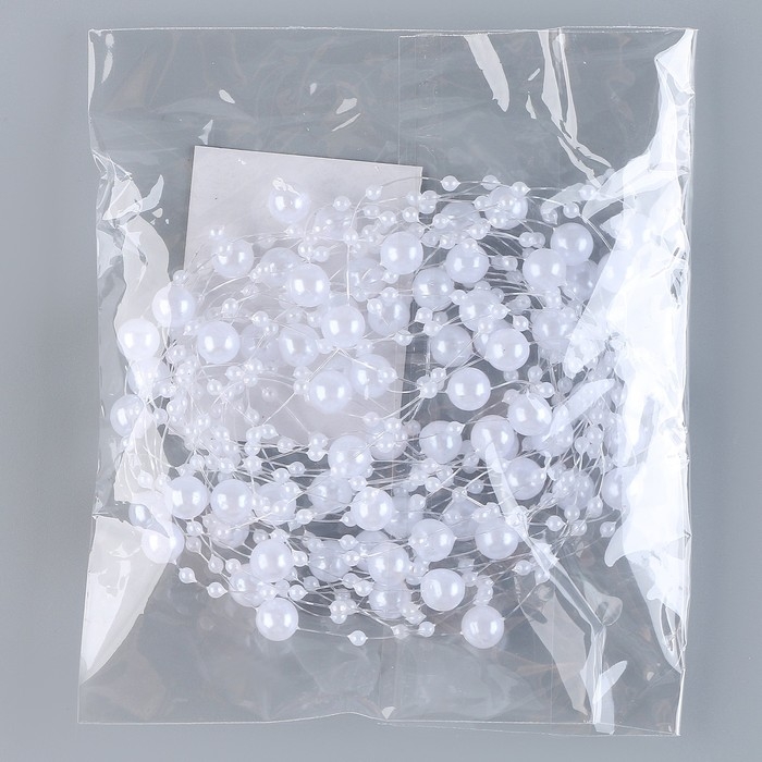 Леска для декора с бусинками, длина — 4,8 м, цвет белый