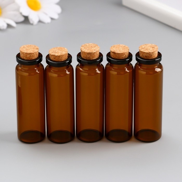 Декор для творчества стекло "Бутылочка с пробкой"набор 5 шт 15 мл 7х2,2х2,2 см цвет чайный