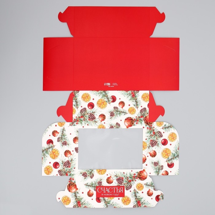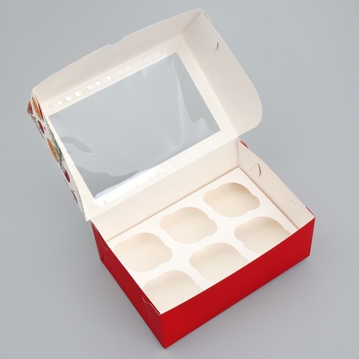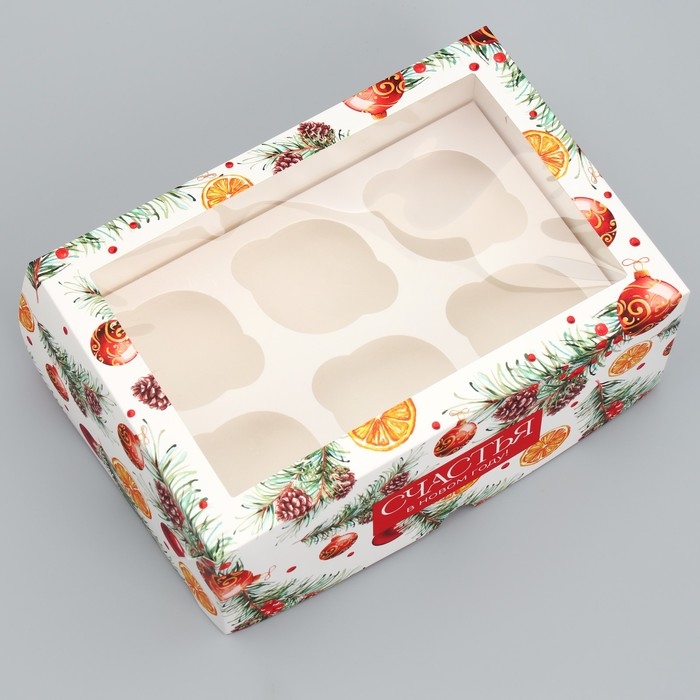 Коробка складная на 6 капкейков с окном «Счастья в новом году», 25 х 17 х 10 см, Новый год
