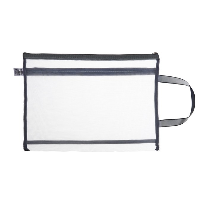 Папка-конверт на молнии формат А4, 2 отделения, с ручкой, Сеточка Серый