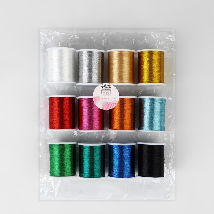 Набор ниток металлизированных, 91 ± 1 м, 12 шт, цвет разноцветный