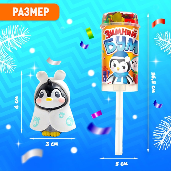 Новый год! Хлопушка на палочке «Зимний бум» пингвин