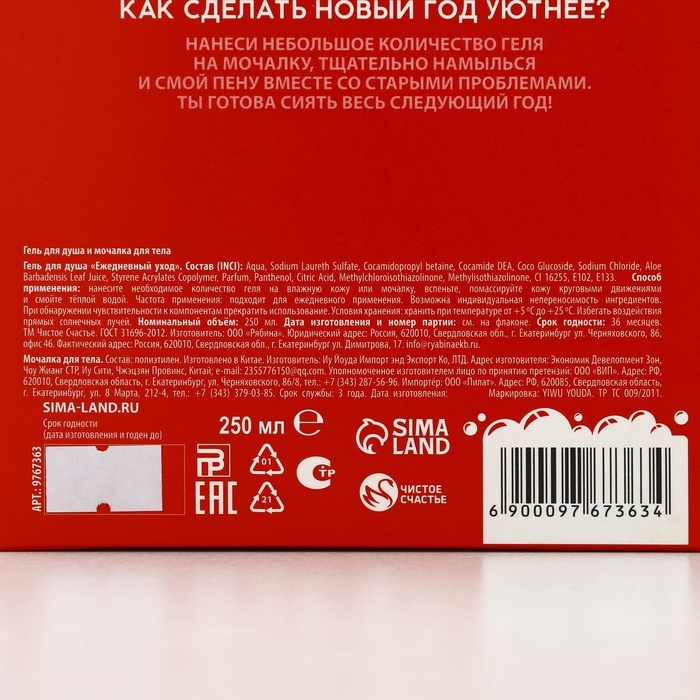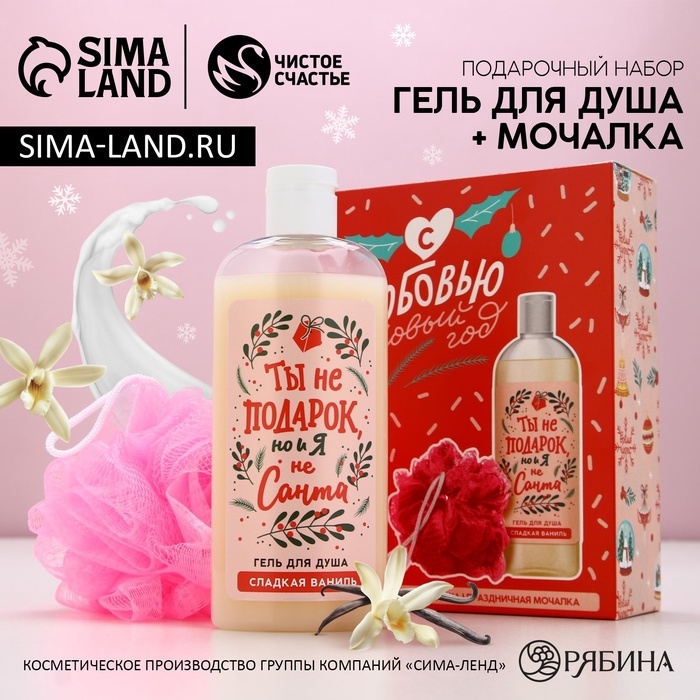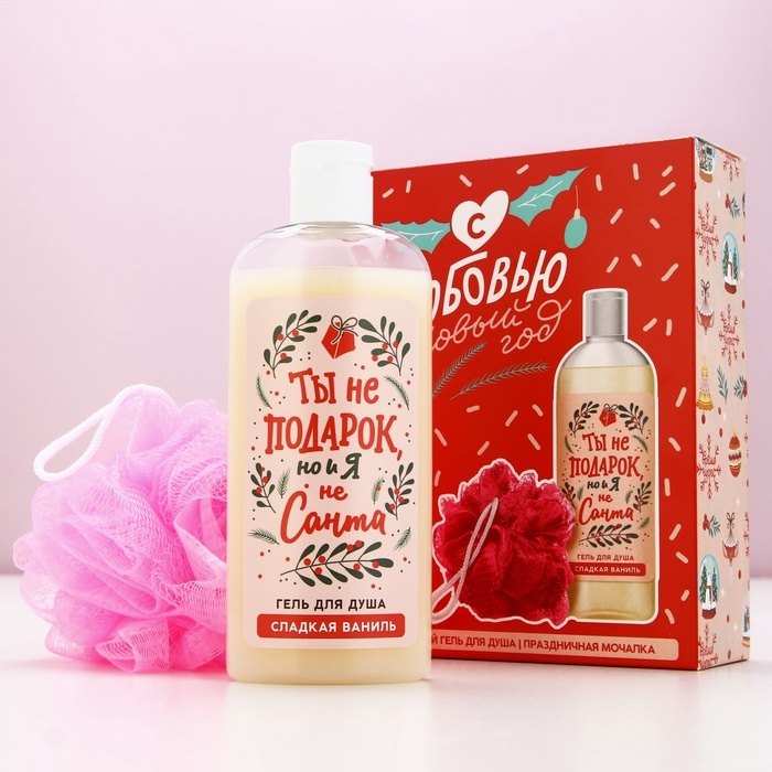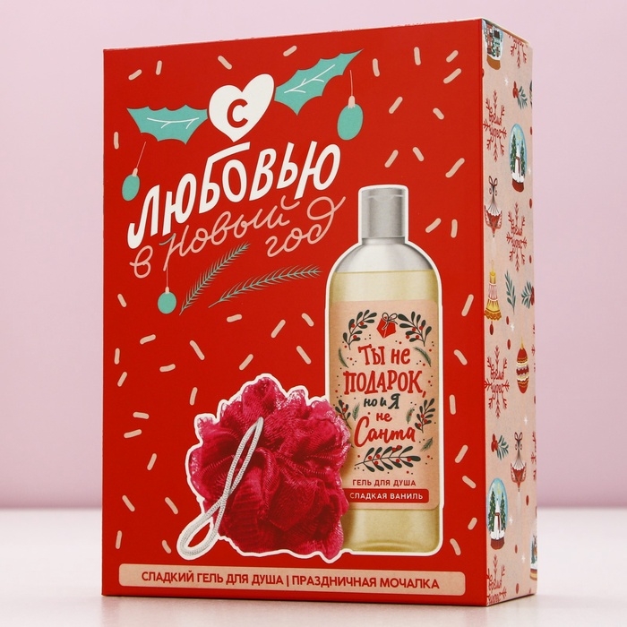Подарочный набор косметики «С любовью в Новый Год!», гель для душа 250 мл и мочалка для тела, ЧИСТОЕ СЧАСТЬЕ