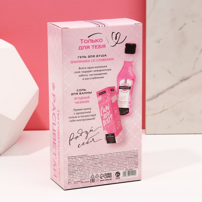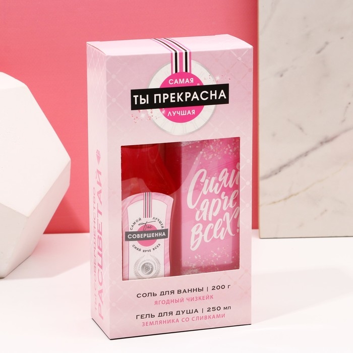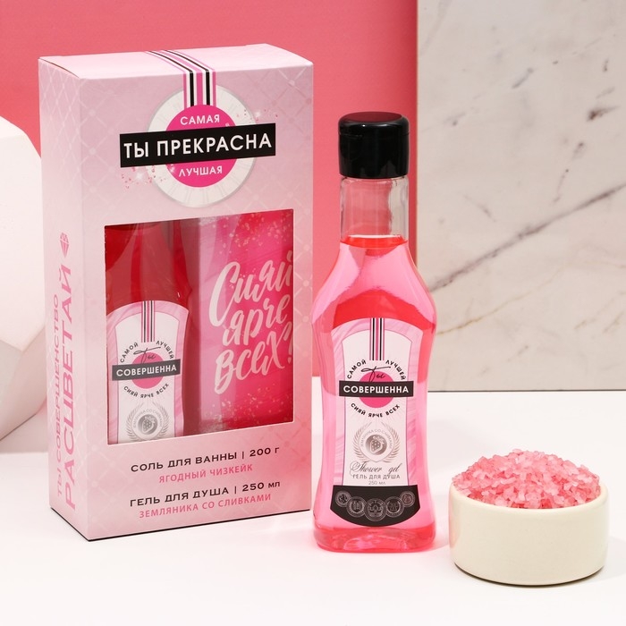 Подарочный набор косметики «Ты прекрасна!», гель для душа во флаконе мартини 250 мл и соль для ванны 200 г, Новый Год