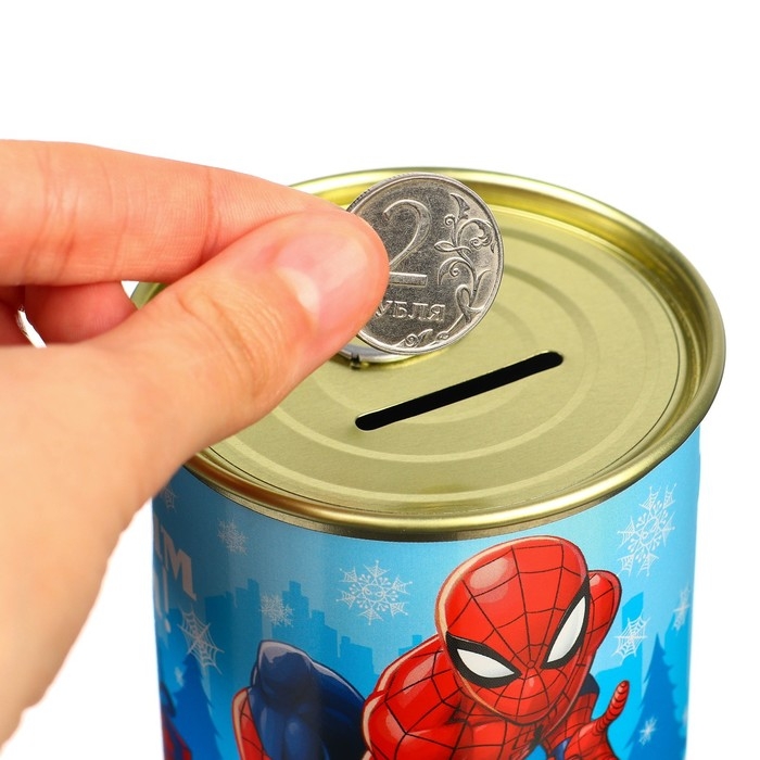 Новый год. Копилка "С Новым годом!", 9.5х9.5х7.5 см, Человек паук