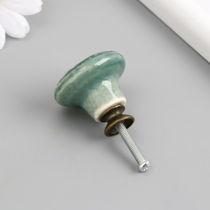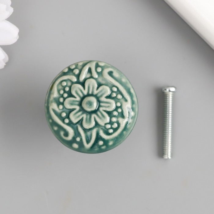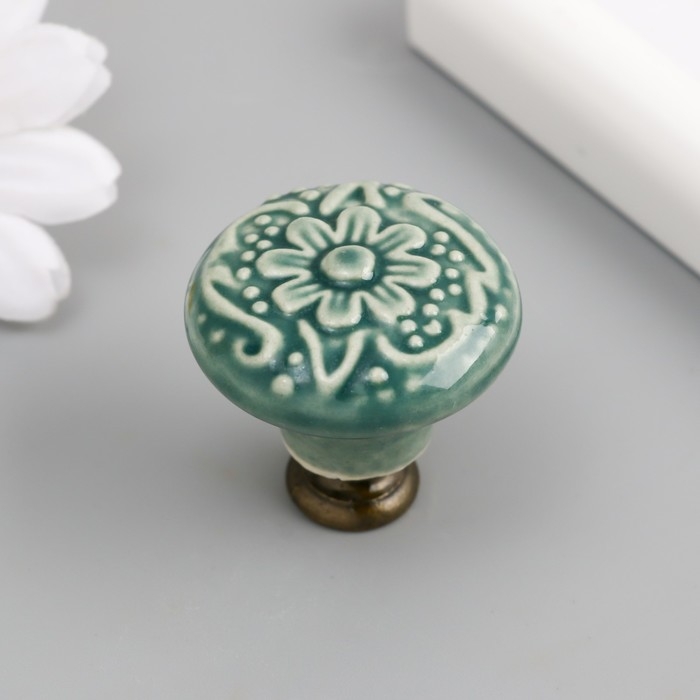 Ручка для шкатулки керамика, металл "Цветок" зелёная 3,4х3,4х3,4 см