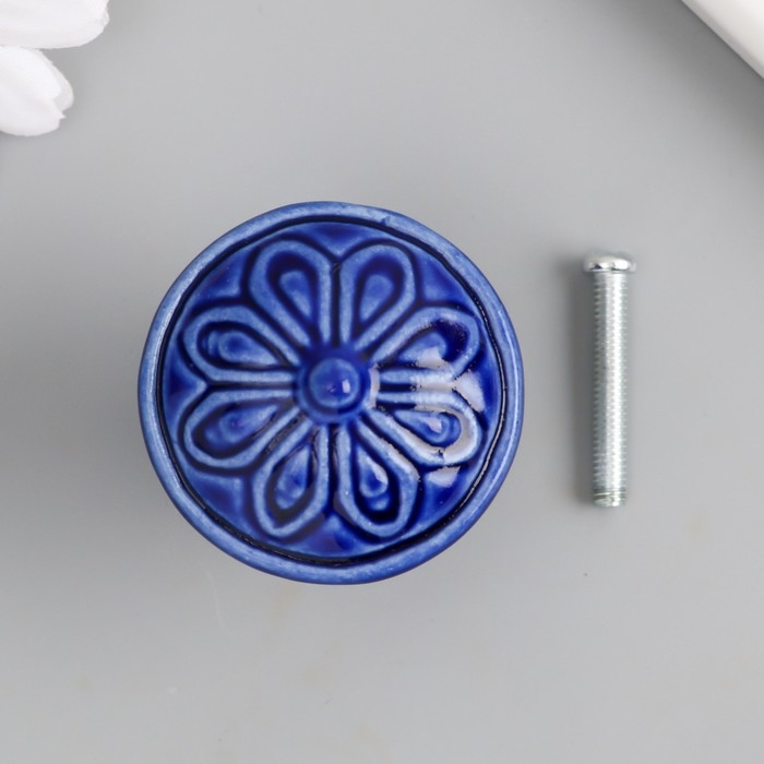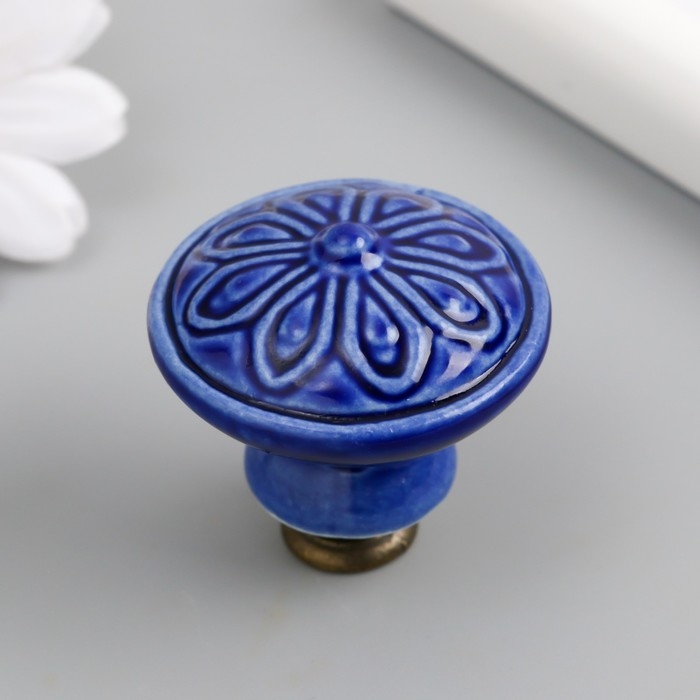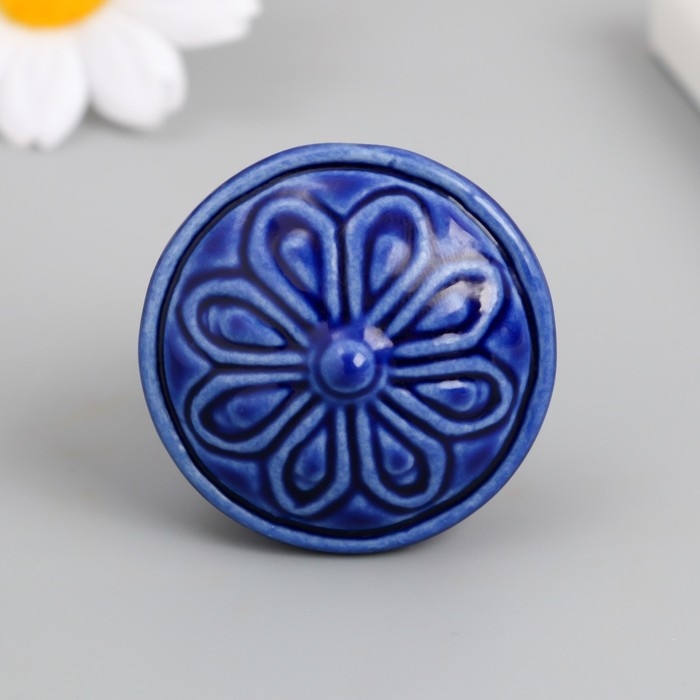 Ручка для шкатулки керамика, металл "Цветок" тёмно-синяя 3,9х3,9х3,1 см
