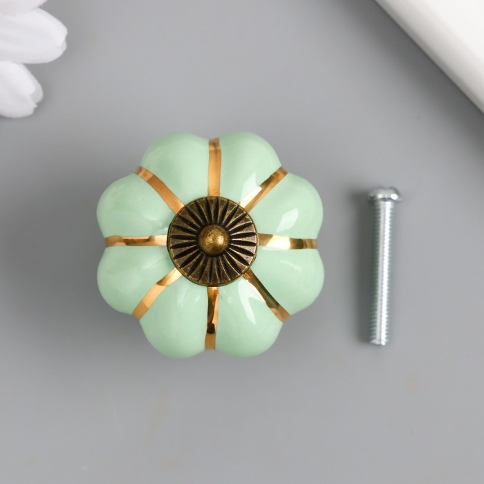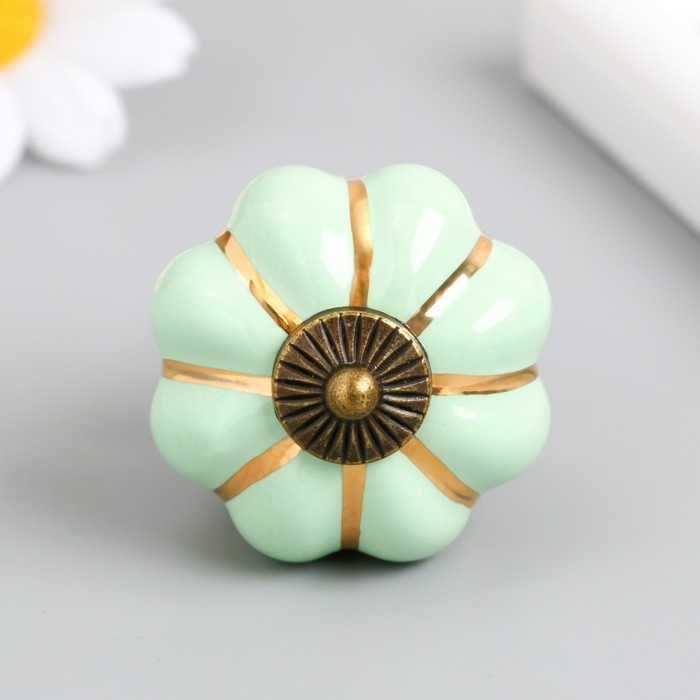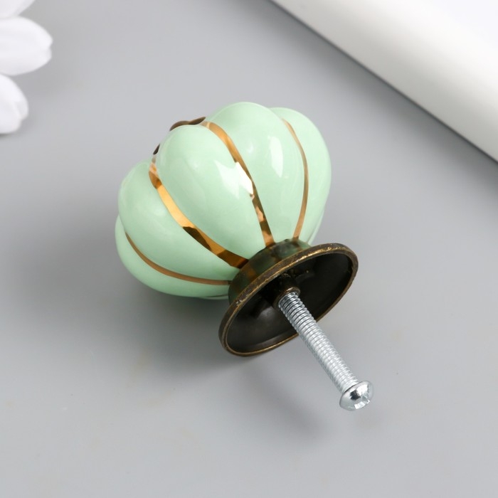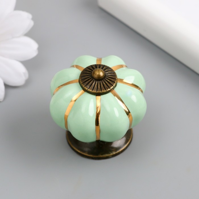 Ручка для шкатулки керамика, металл "Тыковка" фисташка 4х4х4 см