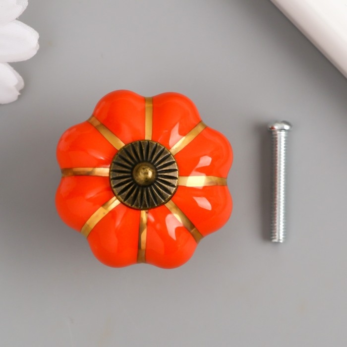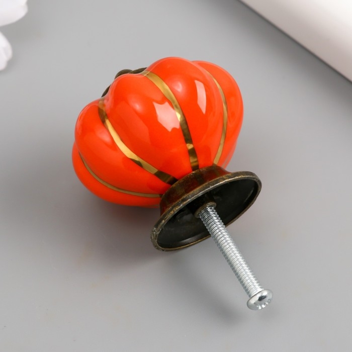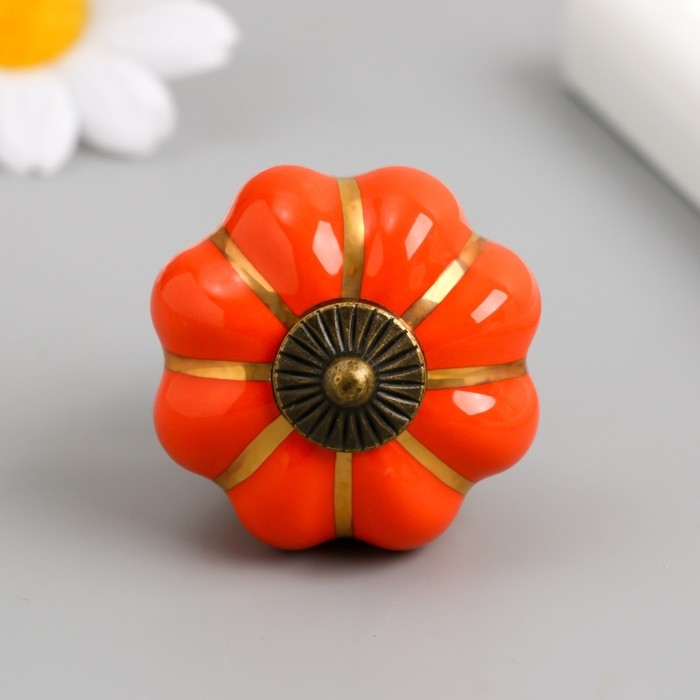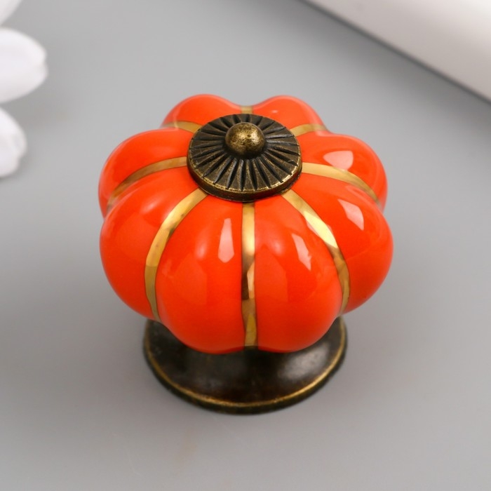 Ручка для шкатулки керамика, металл "Тыковка" апельсин 4х4х4 см