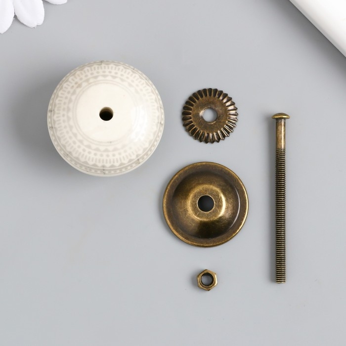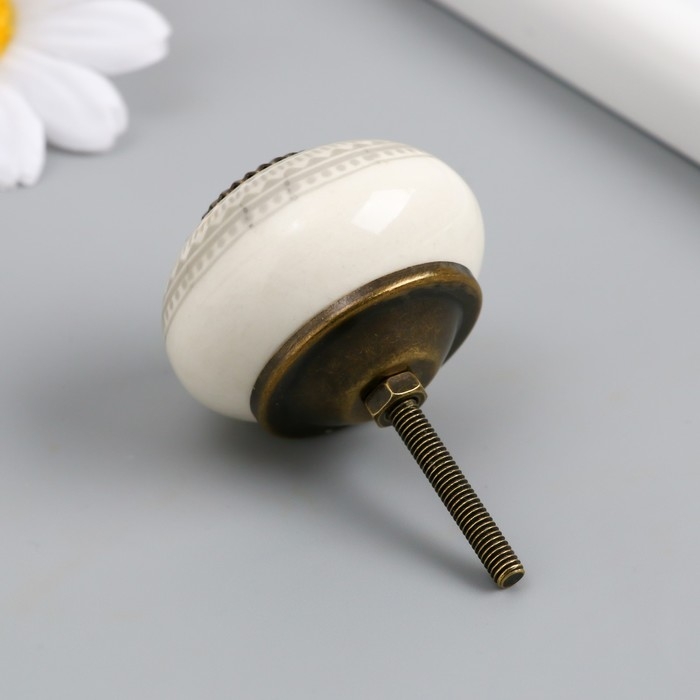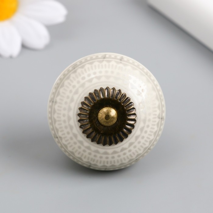 Ручка для шкатулки керамика, металл "Геометрический узор" бело-серая 4,1х4,1х6 см