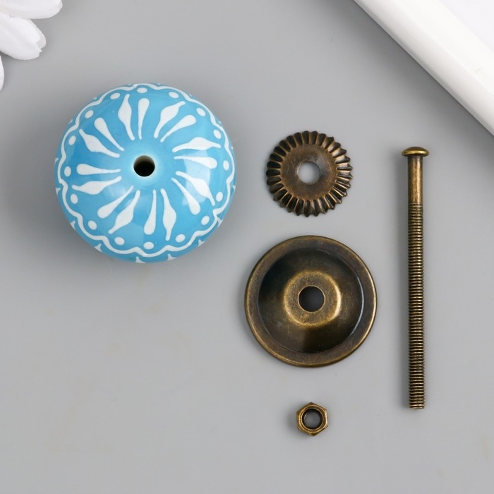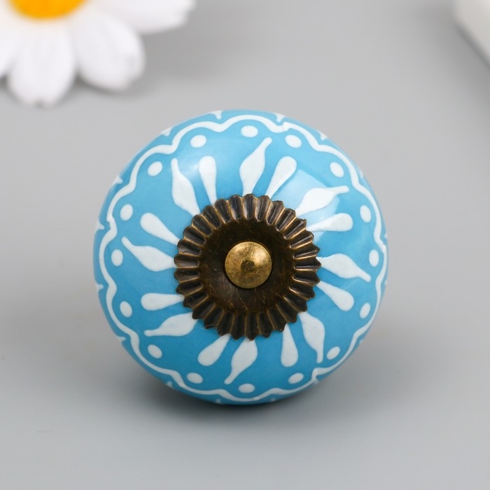 Ручка для шкатулки керамика, металл "Белый узор на голубом" 4,1х4,1х6 см