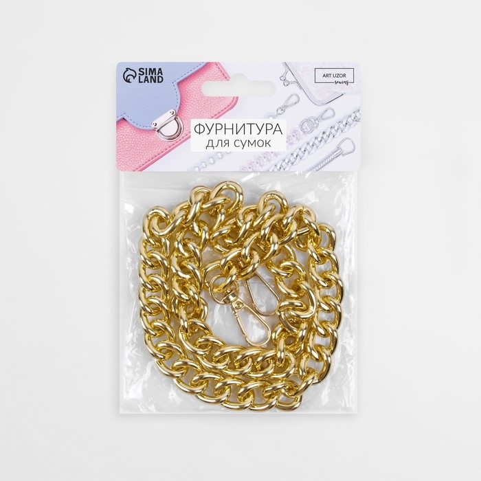 Цепочка для сумки, с карабинами, 14 × 18 мм, 60 см, цвет золотой
